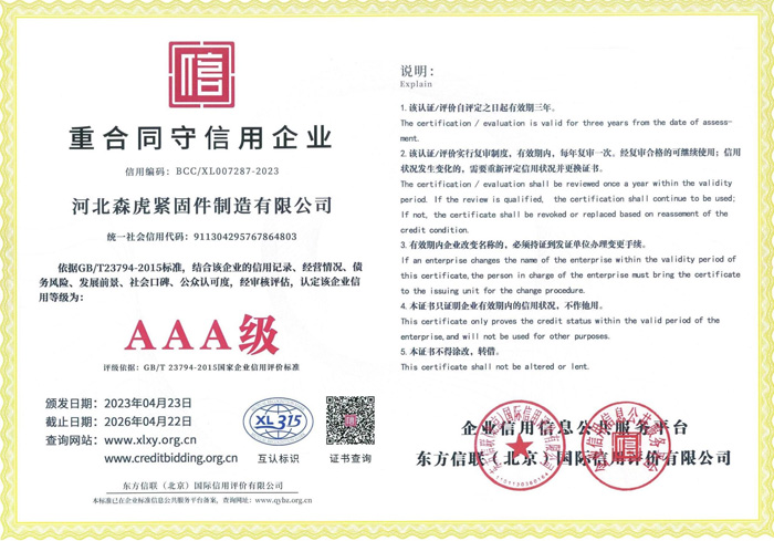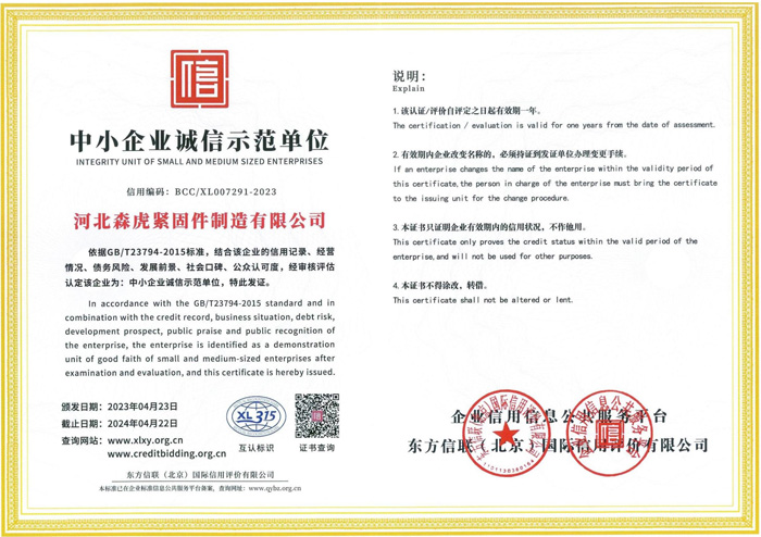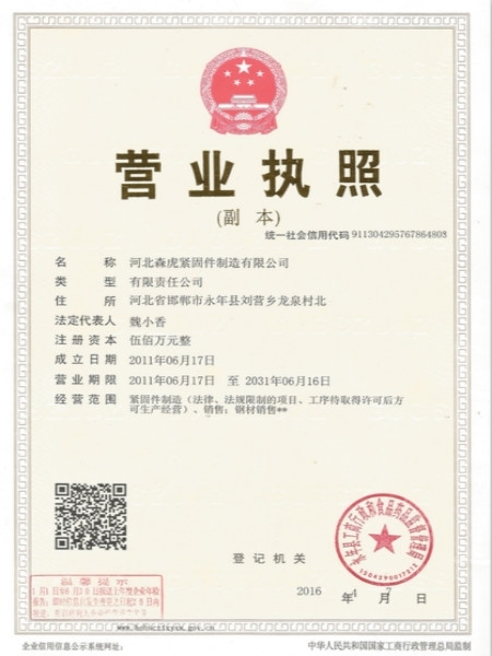 河北森虎緊固件制造有限公司成立于2011年,是建廠較早的緊固件企業(yè)。西臨京廣線(xiàn),東臨京深高速,地理位置優(yōu)越,交通便利。 主要生產(chǎn):化學(xué)錨栓、機(jī)械錨栓、定型化學(xué)錨栓、高強(qiáng)度8.8級(jí)化學(xué)錨栓、自切底機(jī)械錨栓、車(chē)修壁虎,膨脹螺栓,植筋膠。 質(zhì)量方針:先進(jìn)技術(shù)、科學(xué)管理、優(yōu)良品質(zhì)、用戶(hù)滿(mǎn)意; ...